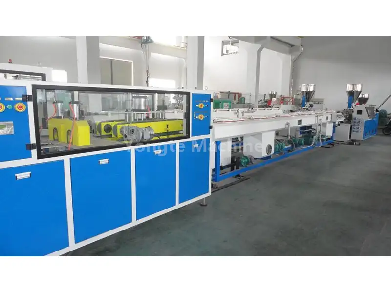 Mesin Pembuat Pipa PVC Rongga Ganda 16-50mm yang tahan lama dari pabrik Yongte adalah peralatan produksi berkinerja tinggi yang dirancang untuk secara bersamaan membuat dua pipa PVC dengan produktivitas unggul. Ini menggunakan ekstruder sekrup kembar berbentuk kerucut dengan konfigurasi sekrup yang ditingkatkan, yang menjamin plastisisasi resin PVC yang konsisten (SG-5, UPVC, CPVC) dan berbagai aditif. Laju produksi pipa PVC rongga ganda 16-50mm bisa mencapai 12-15 meter per menit. Alat berat ini menunjukkan kekuatan inti seperti otomatisasi canggih, peningkatan efisiensi, kualitas luar biasa, arsitektur mekanis ergonomis, penghematan energi, dan pengoperasian yang ramah pengguna.