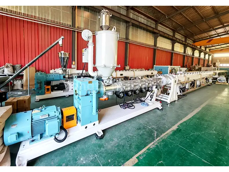 Bahan PE secara otomatis dikirim ke hopper pengering ekstruder melalui pengumpan vakum, di mana kelembapan dihilangkan untuk menjaga kandungannya di bawah 0,1% dan memastikan kualitas produk.